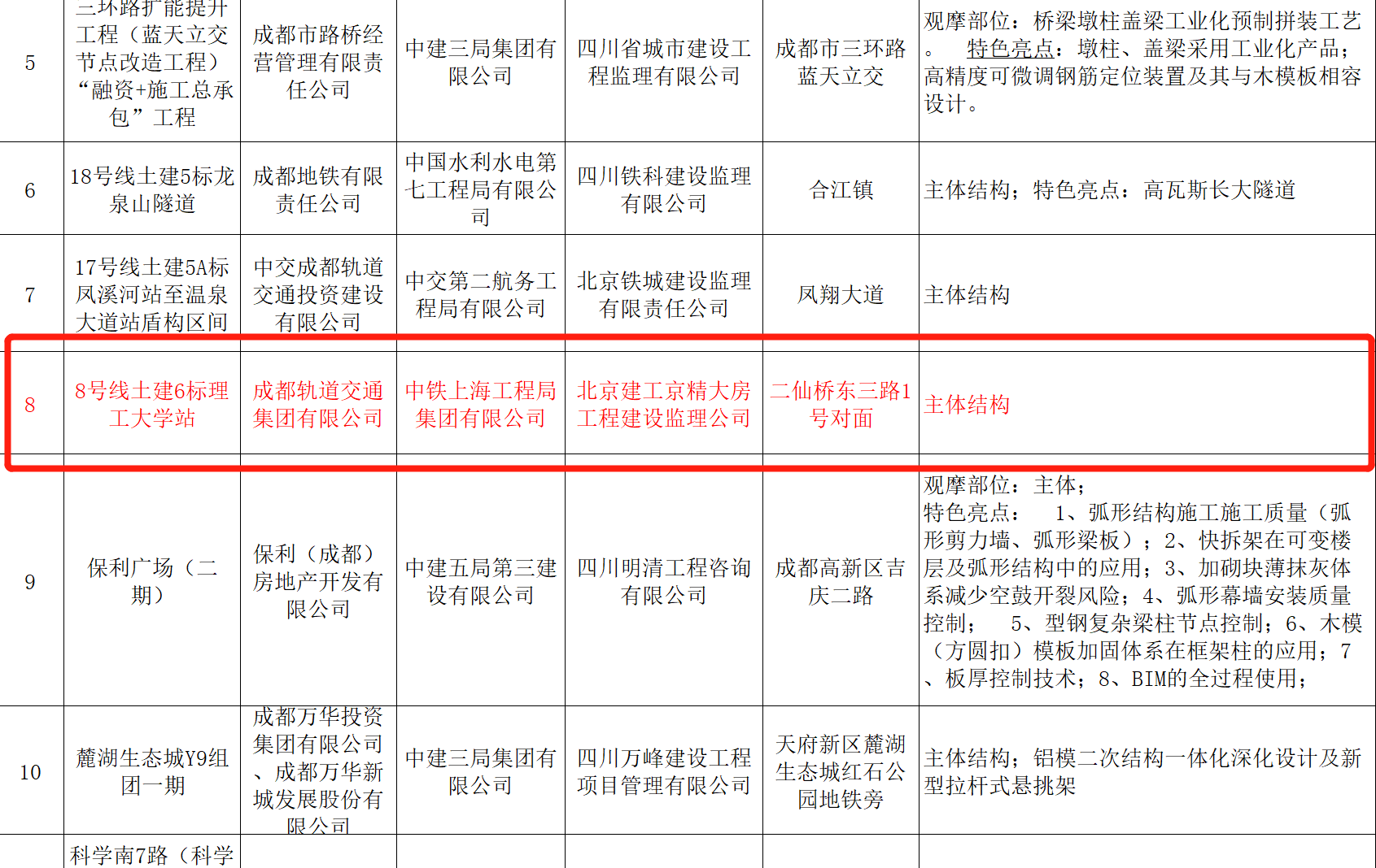 近日,由公司承建的成都軌道交通8號(hào)線一期工程6標(biāo)理工大學(xué)站榮獲2019年度成都市“優(yōu)質(zhì)示范工程”,這是繼理工大學(xué)站榮獲成都市“安標(biāo)工地”后的又一殊榮。...