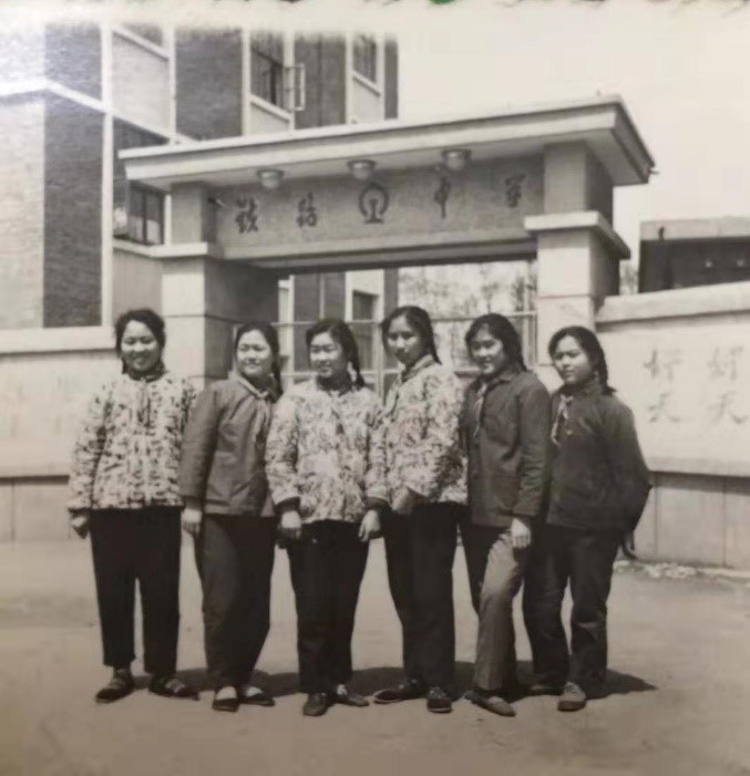 同學(xué)們在鐵路中學(xué)校門口合影