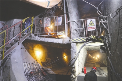 而且該段隧道為存車折返線,隧道十分寬大,無法采用常規(guī)的盾構(gòu)機(jī)掘進(jìn),因此這504米長的距離只能人工掘進(jìn),據(jù)該負(fù)責(zé)人介紹,這段隧道都在地下9至11米,隧道的樣式如同馬蹄形,面積大約有88.7平方米,純手工作業(yè),每天的掘進(jìn)量大概只有60多厘米。