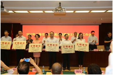 繼2015年榮獲上海市合作交流系統(tǒng)第六屆(2013-2014年度) “文明單位”以來,公司黨委就確定了上海市級“文明單位”的創(chuàng)建目標(biāo),并制定了詳細(xì)的創(chuàng)建規(guī)劃,以“努力創(chuàng)建上海市文明單位、促進(jìn)企業(yè)科學(xué)化發(fā)展上水平”為主線,以《文明單位創(chuàng)建管理規(guī)定》為準(zhǔn)繩,緊密結(jié)合生產(chǎn)經(jīng)營、企業(yè)黨建、文化建設(shè)、社會責(zé)任等方面,扎實(shí)開展文明單位創(chuàng)建活動。經(jīng)過積極申報,認(rèn)真做好網(wǎng)站風(fēng)采展示,上傳各項(xiàng)創(chuàng)建工作材料、社會責(zé)任報告及自評等程序,順利通過了考核評審,榮獲上海市“文明單位”。